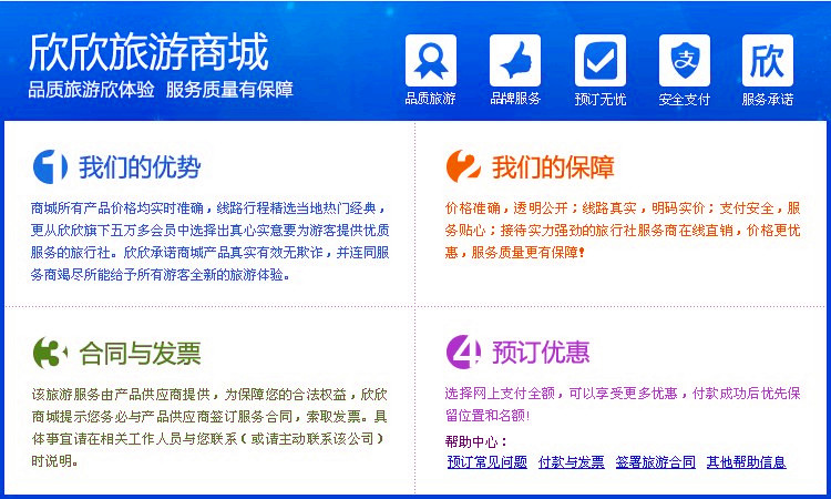1、网上预定:在我公司网站上选择适合您的旅游线路后,你可以与我公司24小时在线客服直接沟通进行预定;也可以在网站留言簿上留下您的出行日期、参团人数和联系方式,我们会在最短时间内派出客服代表与你取得联系。 2、电话预定:郑州游客可以随时直接拨打0371-63870760 63870770 63870780 13271553016 进行旅游线路的预定;外地游客可以随时拨打0371-63870780 63870781进行旅游线路预订,我公司提供24小时电话预订服务。 二、签订合同: 1、郑州游客可直接到我公司签订旅游合同,缴纳旅游团款。我公司也提供上门签订合同服务。 2、外地游客可选择通过银行直接付款。旅游合同在您到来郑州参团之时签订、或找郑州朋友代签、或传真签订。 三、付款方式: 1、直接付款:您可以直接到本公司缴纳旅游团款,我公司也提供上门收取旅游团款服务。 2、卡卡转账:可通过你开通的银行卡网上银行业务,将旅游团款转入我公司指定银行卡中。 3、银行汇款:如您没有开通银行卡网上银行,您可以到银行柜台将旅游团款存入我公司的银行卡号中。 ![]() ![]() |